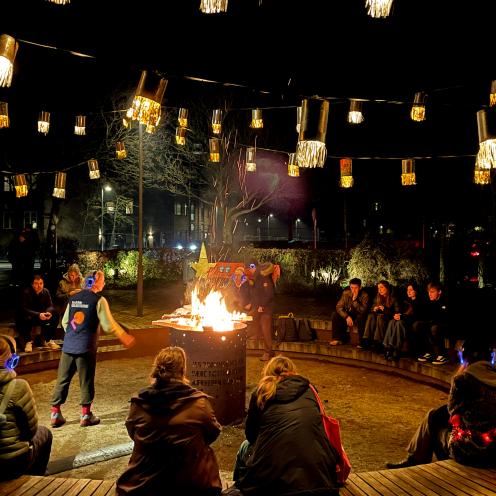 Varm dig rundt om bålet, træk vejret og lyt til højtlæsning i mørket
