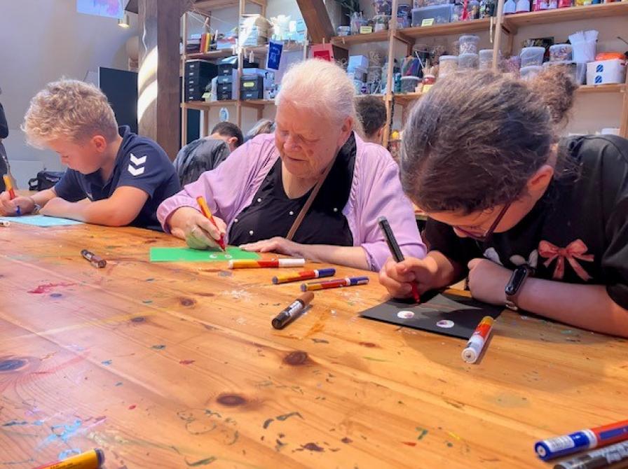 En gruppe ældre fra Trekroner Plejecenter har også deltaget i en workshop. Her har de sammen med 3.B fra Hedegårdenes Skole sat deres præg på det samlede kunstprojekt, som fra og med den 19. september 2025 vil være at finde omkring bymidten og ved Musicon.